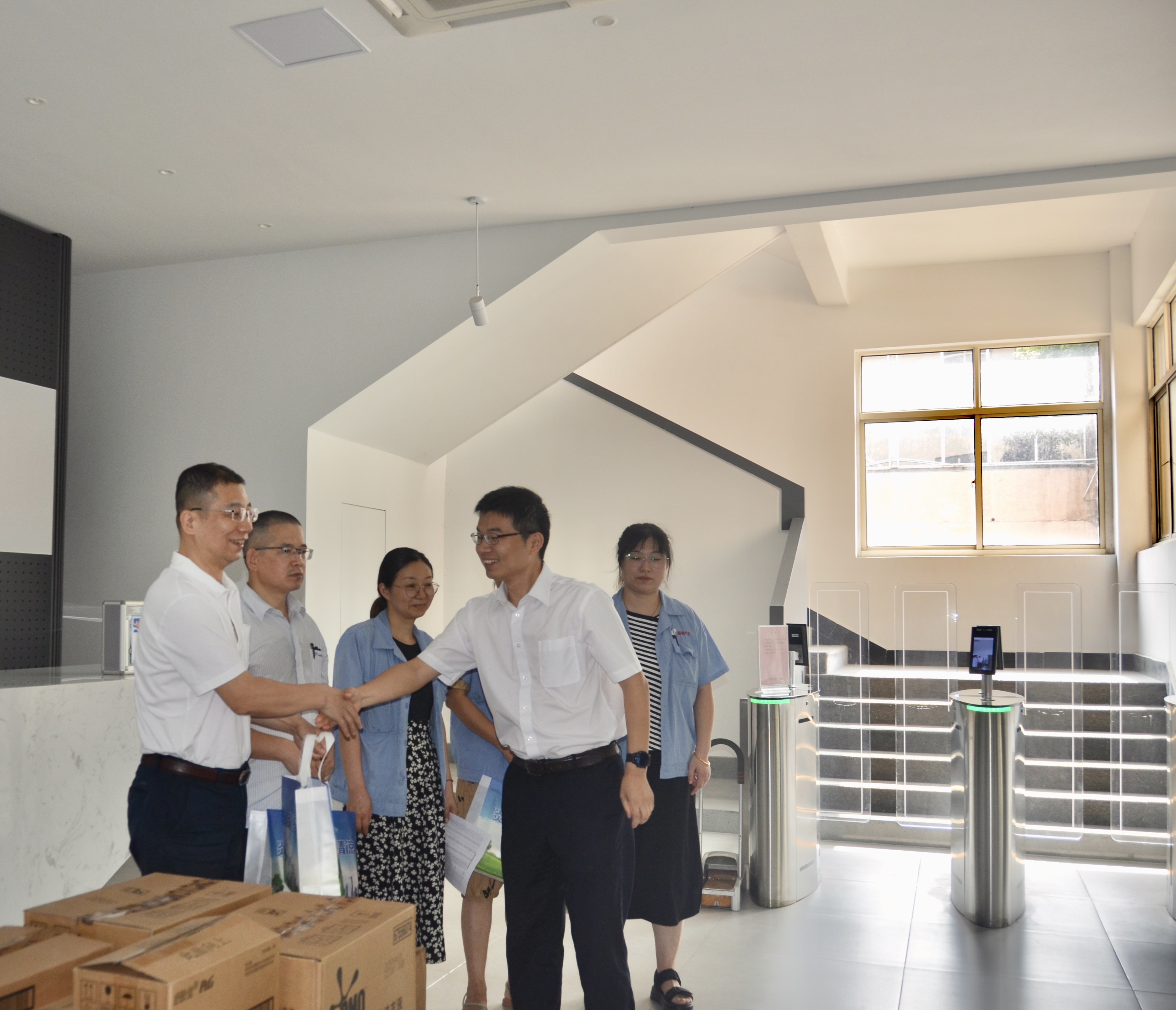 “炎炎夏日送清涼,濃濃關(guān)愛沁人心。”近日,徐舍鎮(zhèn)黃鎮(zhèn)長攜鎮(zhèn)總工會及相關(guān)領(lǐng)導(dǎo)一行來我司開展送清涼活動(dòng),走訪慰問奮斗在高溫崗位的一線員工,為他們送去了防暑降溫用品,讓他們在酷暑中感受到一絲清涼。活動(dòng)中,徐舍鎮(zhèn)相關(guān)領(lǐng)導(dǎo)及工會向奮戰(zhàn)在一線的勞動(dòng)者表示由衷的感謝和問候,與員工代表們親切交談,叮囑大家注意勞逸結(jié)合,防暑降溫,確保安全生產(chǎn)工作有序進(jìn)行。開展“夏送清涼"的活動(dòng),是工會關(guān)心職工生活,保障職工權(quán)益的重要舉措,我司把防暑降溫工作作為夏季重點(diǎn)工作來抓。切實(shí)關(guān)心職工身體健康和勞動(dòng)安全。把防暑降溫工作和勞動(dòng)安全保障落實(shí)到各高溫崗位的職工,讓他們在炎炎夏日感受到物質(zhì)、精神的雙清涼。